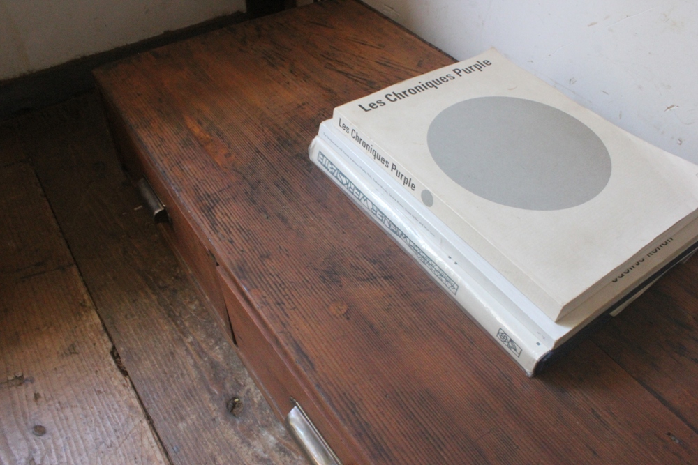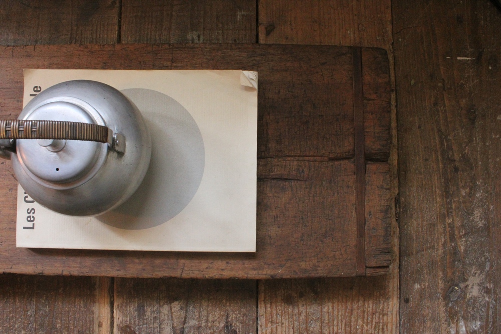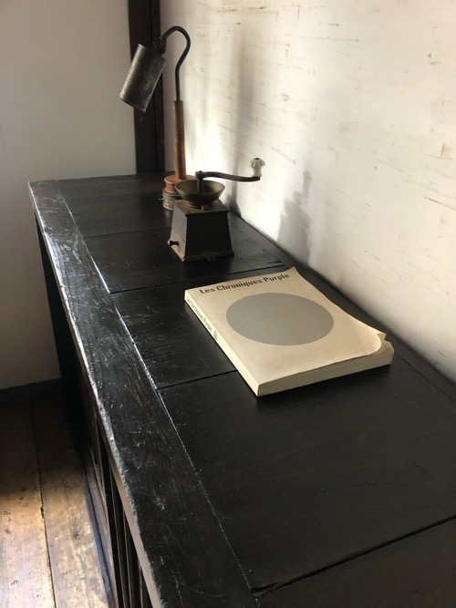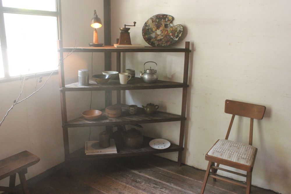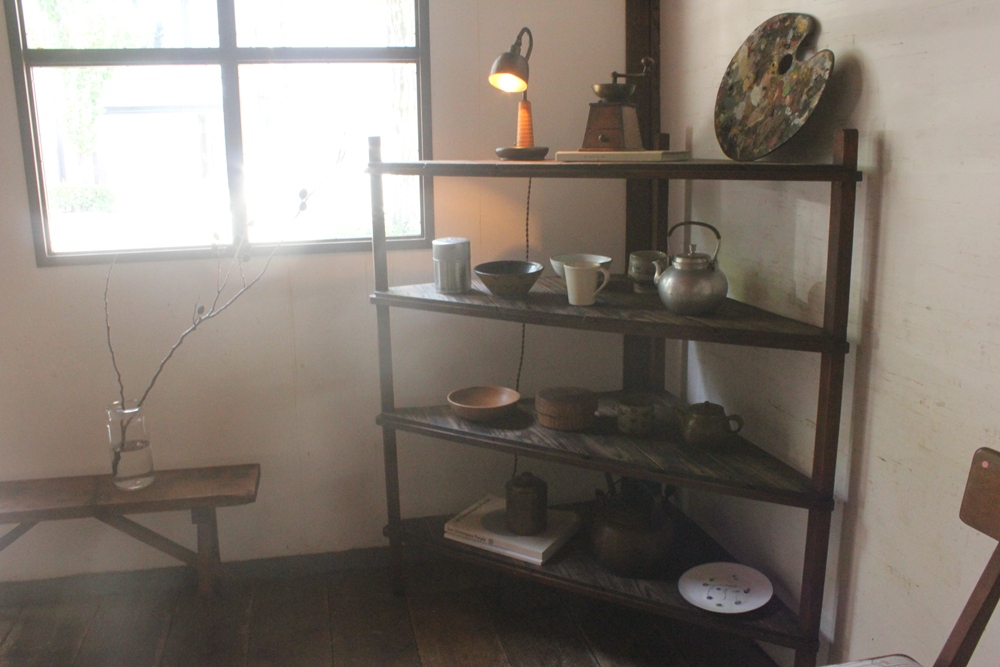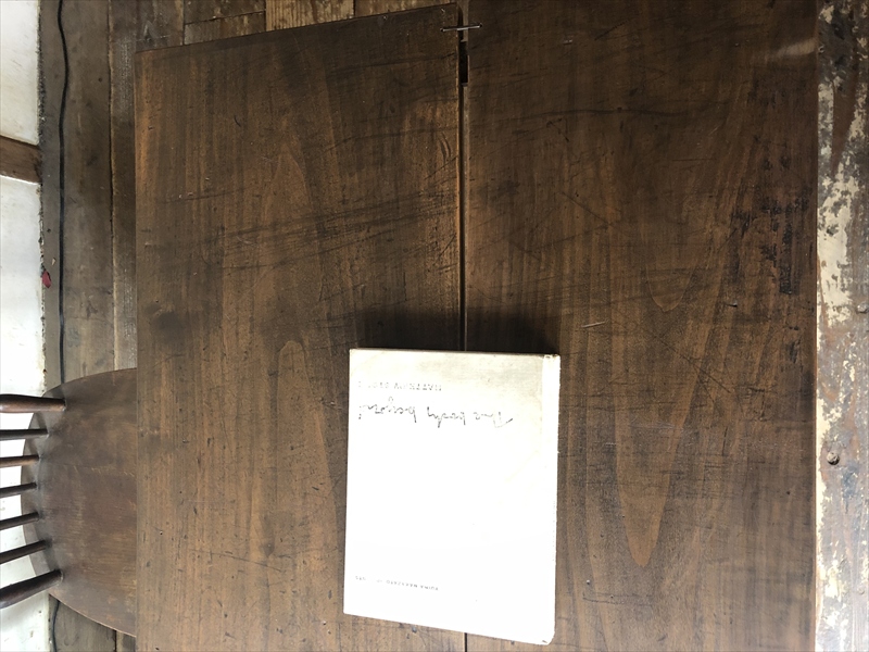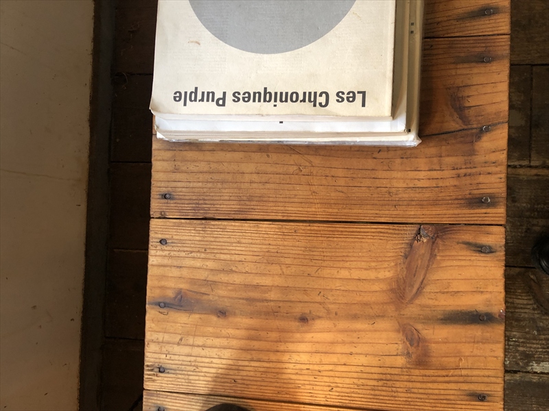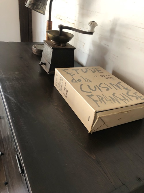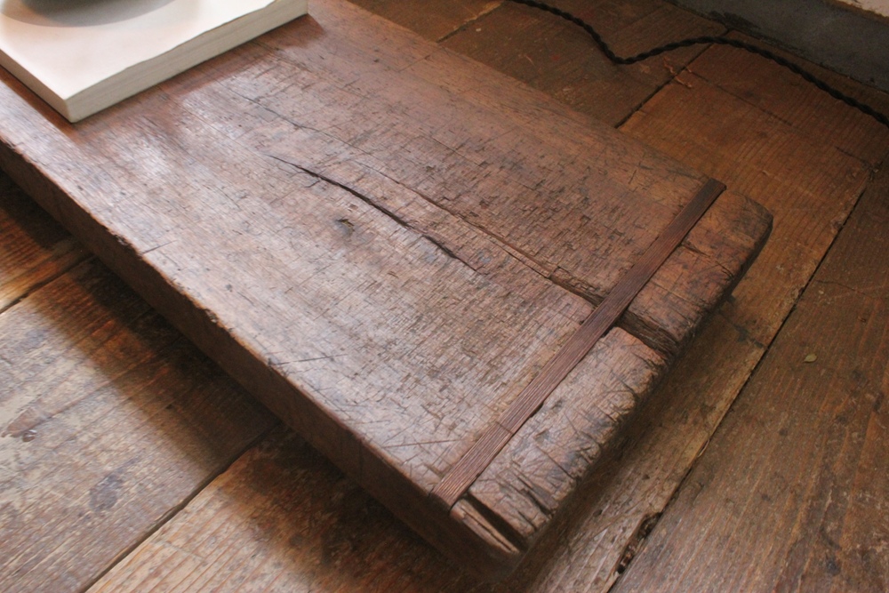 栗と松のテーブルです。天板が栗の木で脚などは松の木です。素朴で良い佇まいです。引き出しがついているので、脚が入るような入らないような感じです。メインのテーブルよりは、お茶をのんだり、ご飯を食べたあとに、お酒をのんだり、休憩に使ったり、そんな使い方が楽しそうです。4人くらいでゆったり囲める大きさです。