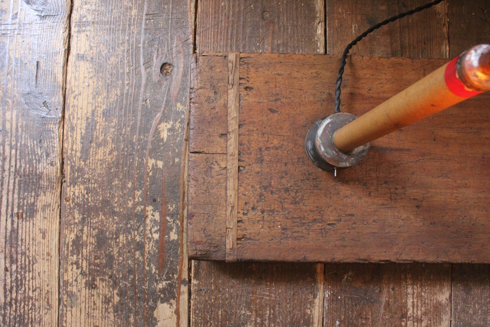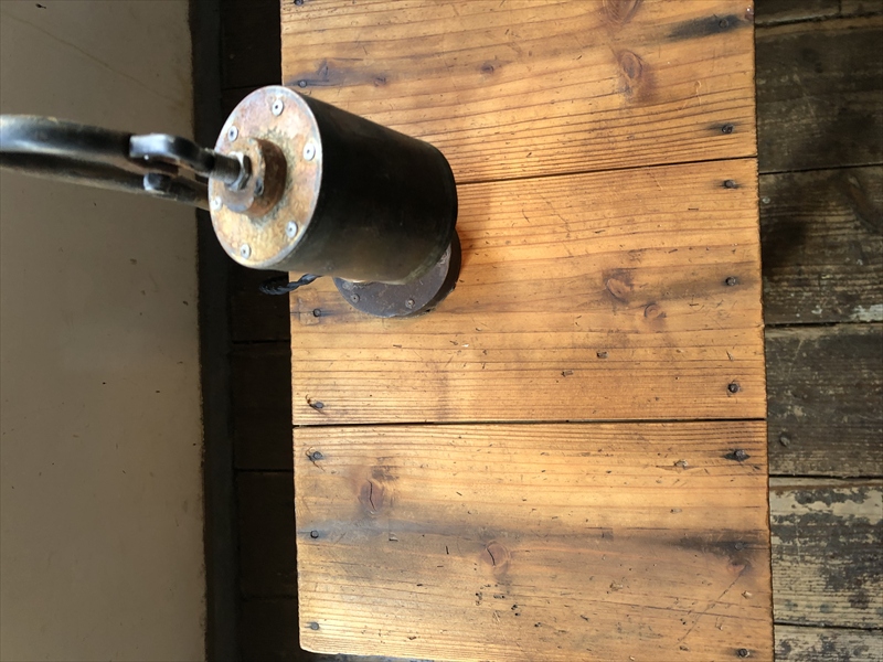 松の木のベンチです。松の一枚板で構成されています。なんとも良い味です。学校で使われていたものですが、支えが覗き込まないと見えないデザインでとても美しいです。見た目は華奢なのに、とてもしっかりしています。座っても良し、テレビ台にしても良し、本棚にしても良さそう。楽しそうです。
