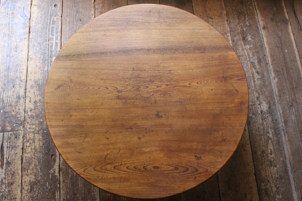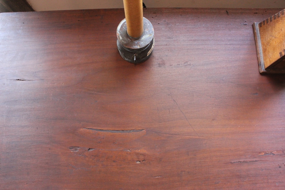 フタバガキのテーブルです。ラワンですが、こちらは国産で杢目がきれいです。洋裁で使われていたので使いこまれた味のある天板です。サイズが珍しく対面で4人、サイドも座って6人でご飯が囲めます。お家に合わせやすいですね。和にも洋間にもスッと馴染みます。脚は鉄製です。底面にアジャスターが付いています。