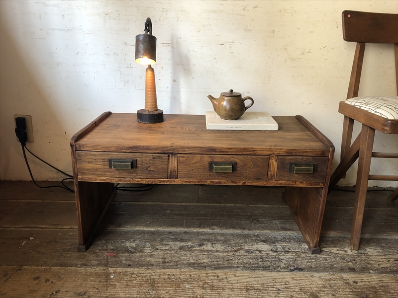 ブナと栗と松のつくえです。みんな素朴でいい味の木です。和室を書斎にしたり、さりげないテレビ台にも良さそうです。引き出しにも文具など仕舞えますよ。
