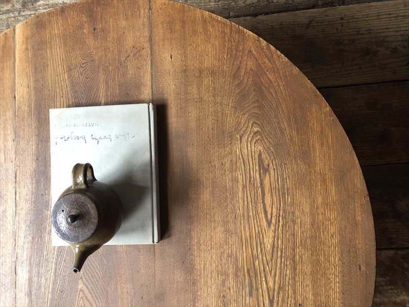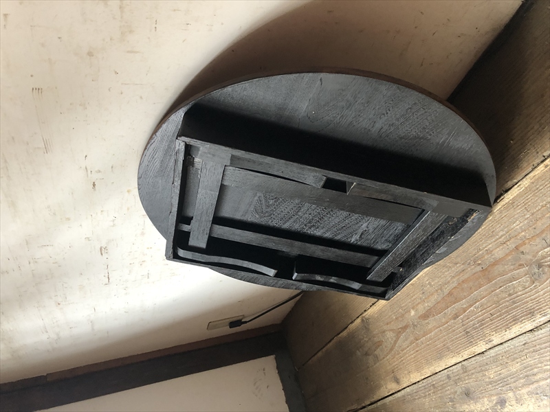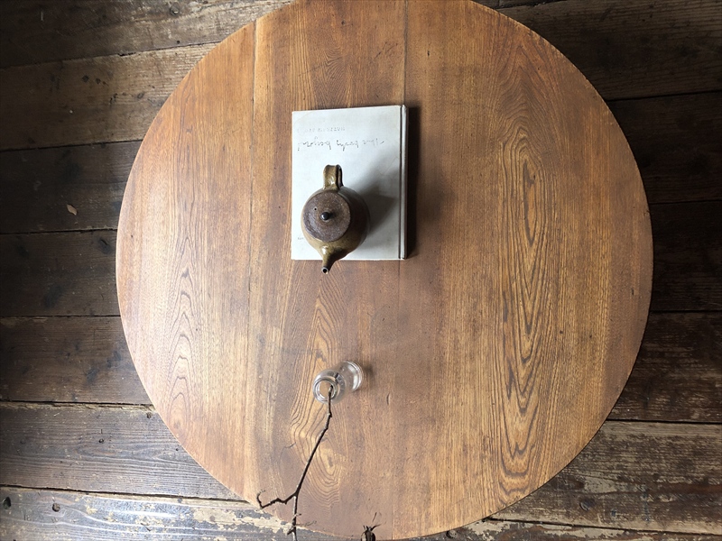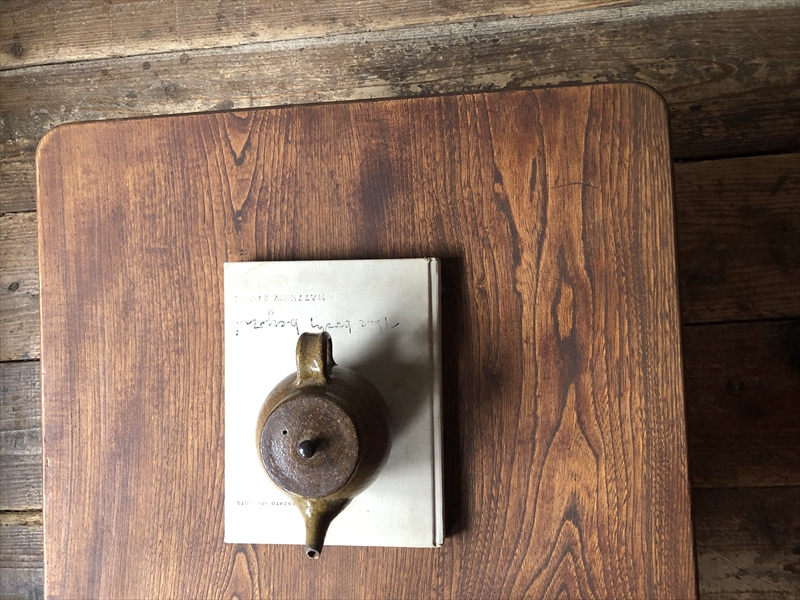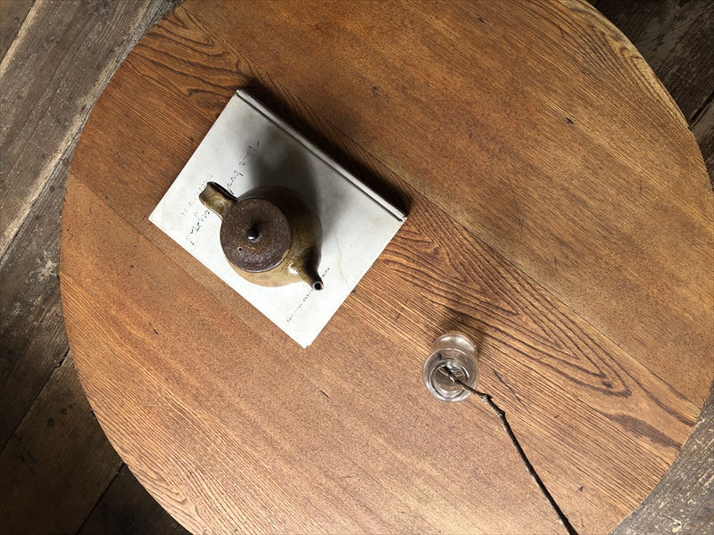 栗のつくえです。栗らしいとろ~んとした味のいい杢目です。明治から大正時代のモノですが、小さいのにこんなに細部まで美しく創られていて、どんなお家で使ってたのか気になります。お部屋に置いておくだけで場がしまります。これならどこでも置けるでしょうから使い手の方がそれぞれ楽しんでお使いくださいね。
