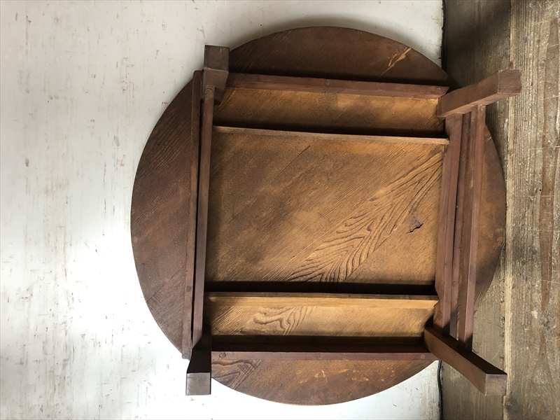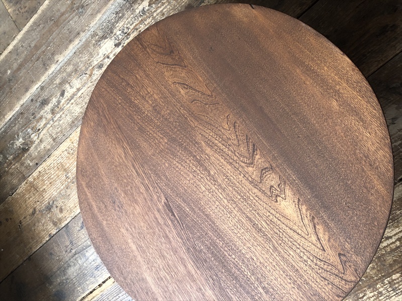 センのちゃぶ台です。美しい杢目です。すこし大きめ、丸ちゃぶ台にしては天板まで高めで使いやすいです。4人でしっかりお鍋など囲めます。和にも洋間にも合いますよ。折りたたみ出来ます。