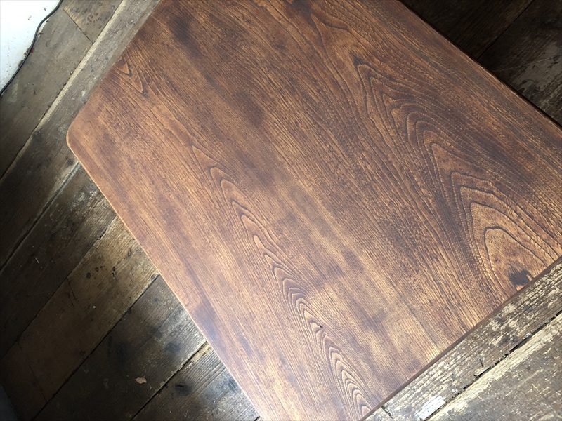 昭和30年代のシンプルなデザインのローテーブルです。ソファの前に置いたり、1~2人くらいのごはんにちょうどいいです。ナラの無垢材で、いい木味です。