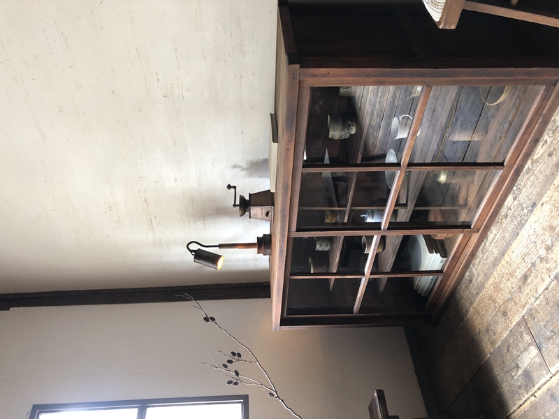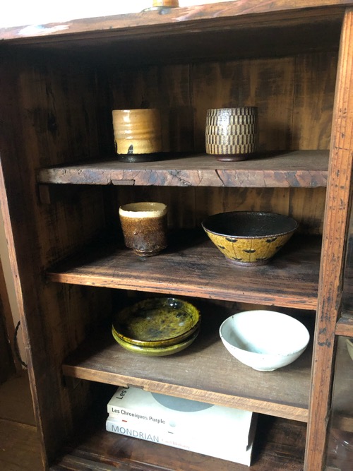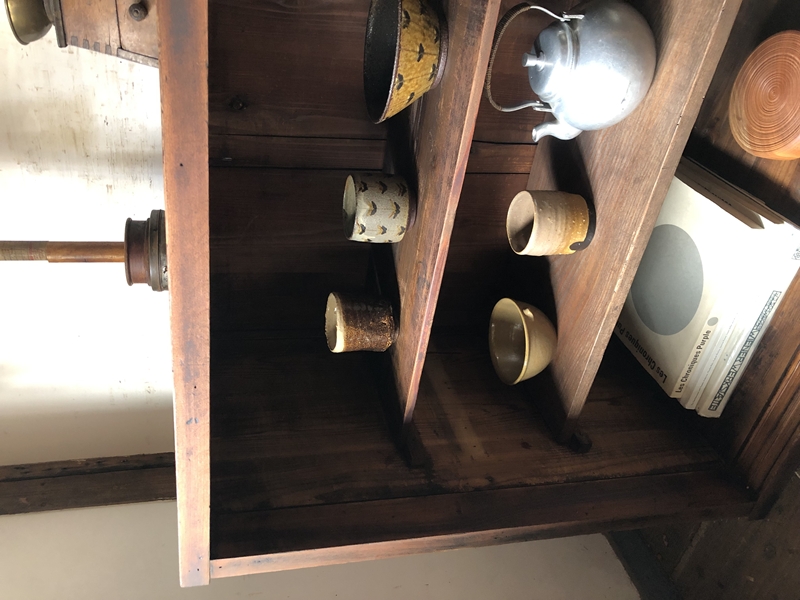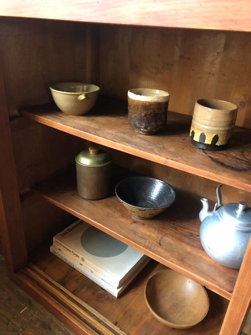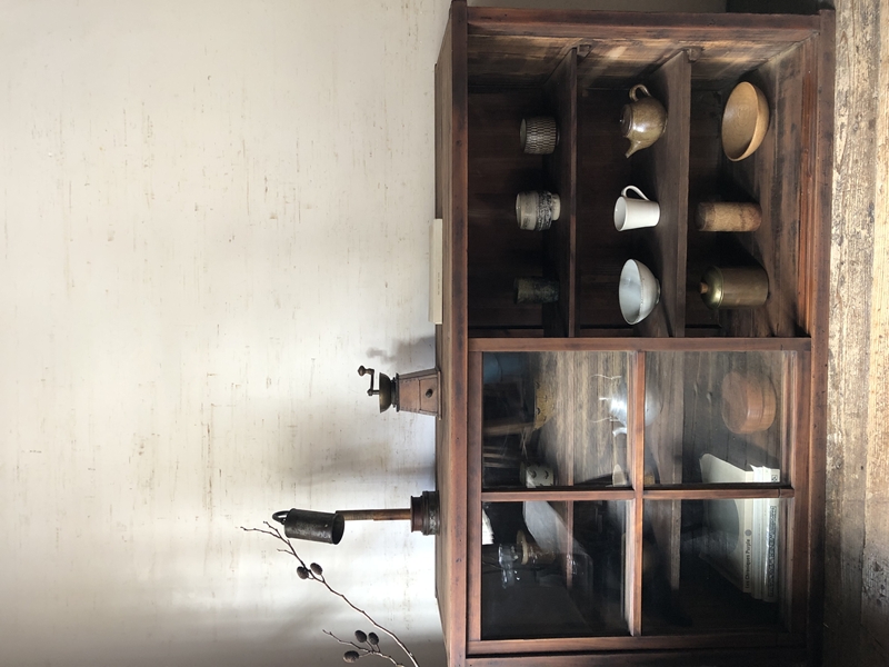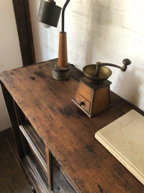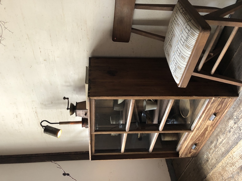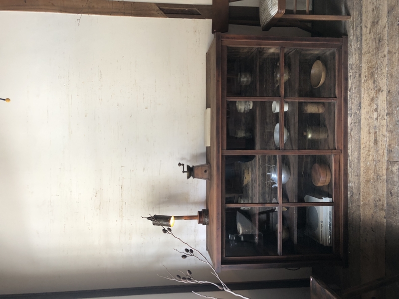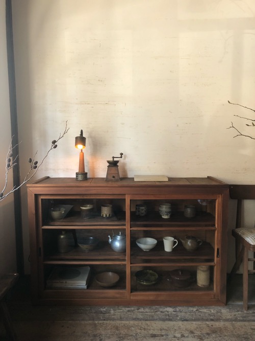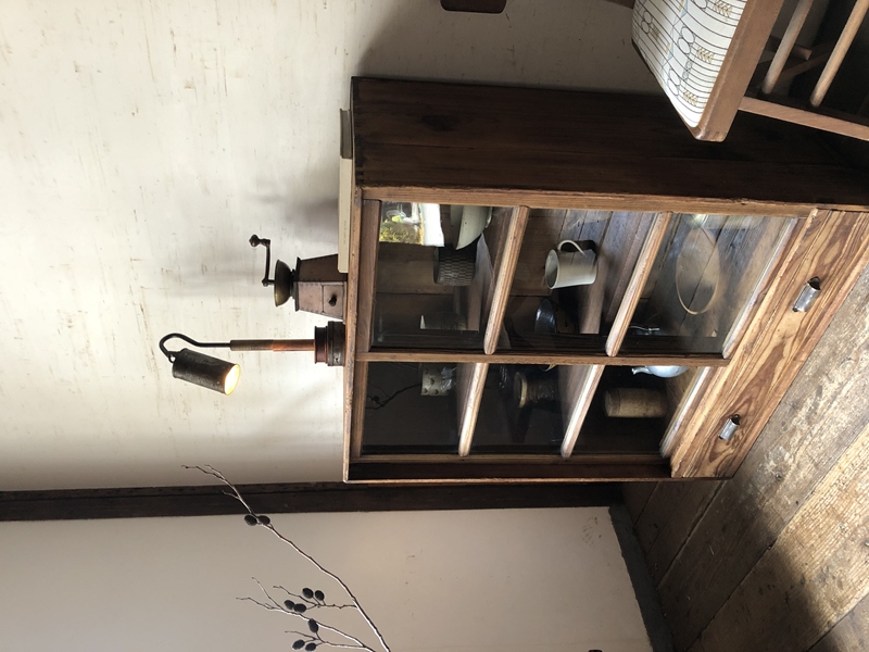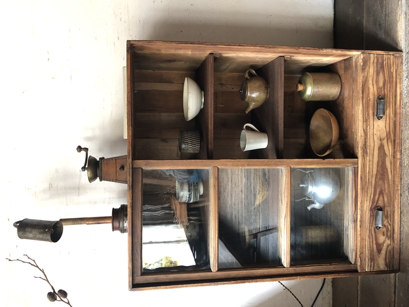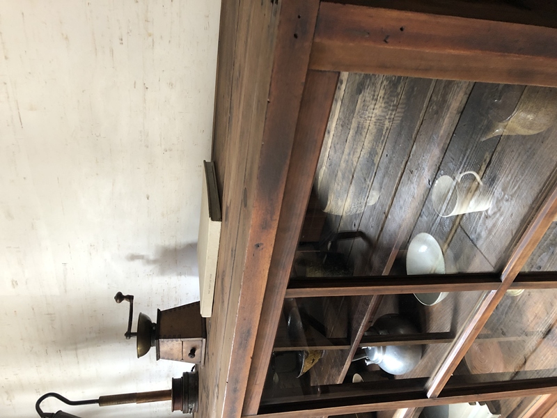 片扉のキャビネットです。大正時代のもので、取っ手も木の感じも格好いいです。お茶まわりのものだけ入れたり、酒器だけ入れてもなかなかよさそうです。