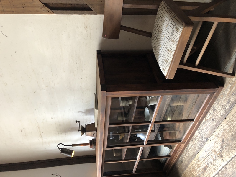 栗のキャビネットです。栗は黒を持った木でとろ~んとしたとても味のいい杢目です。片扉でとても美しい形です。奥行も狭く、横幅も小さめでこれならどこかに置けそうです。身近に置いておきたい器や雑貨な置物など愛でながら収納出来ます。フランスのモノみたいな佇まいですが、日本のもので素敵なお家で使われてたのが想像できますね。