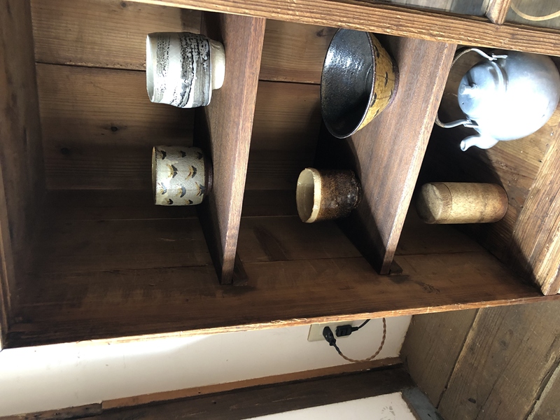 松と栗の木で作られた水屋です。見せながら、器が収納できます。天板にも色々置きやすい高さで、流し台のうしろに置いて、カウンターっぽくも使えます。とてもいい佇まいです。