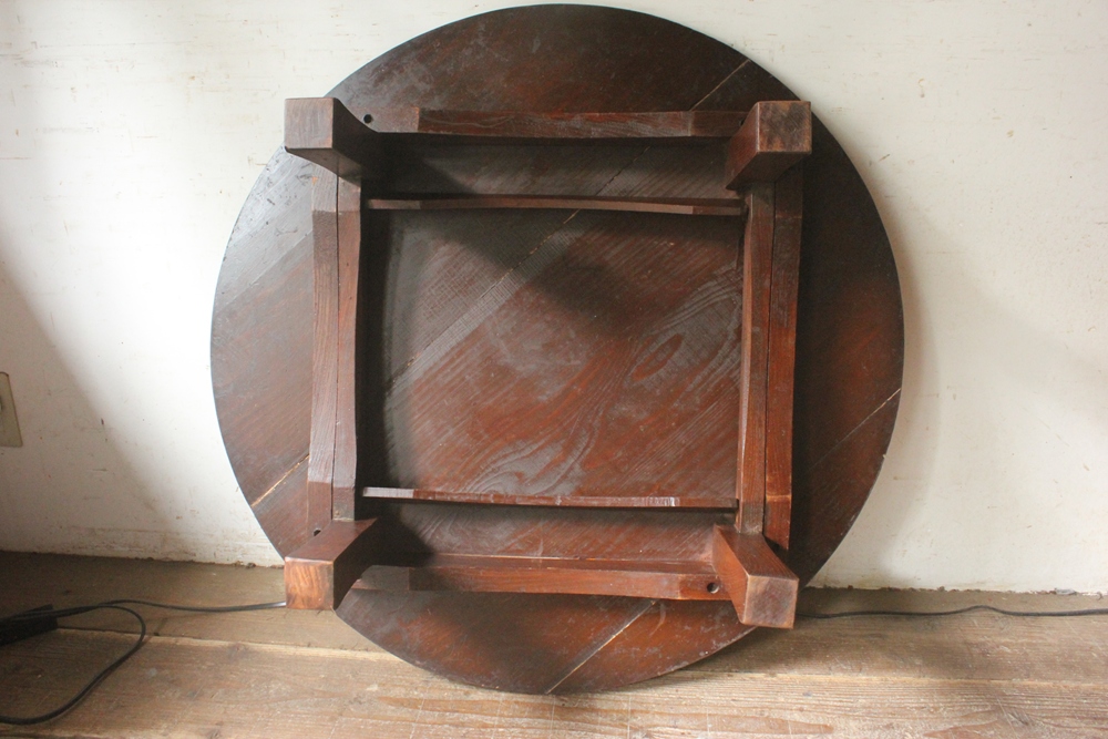杉のちゃぶ台です。杉のちゃぶ台は珍しく、大人っぽくなりますね。なぜか?脚は栗の木で、趣味人がオーダーしたのかよ!っておもいました。3~4人でご飯が囲める大きさです。可愛らしくなりすぎないちゃぶ台をお探しの方に良いと思います。折りたたみ出来ますよ。
