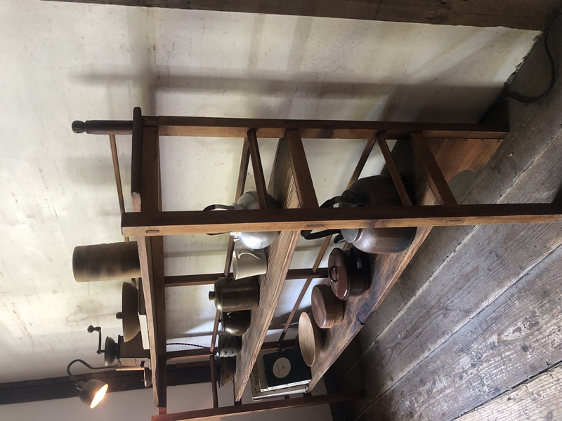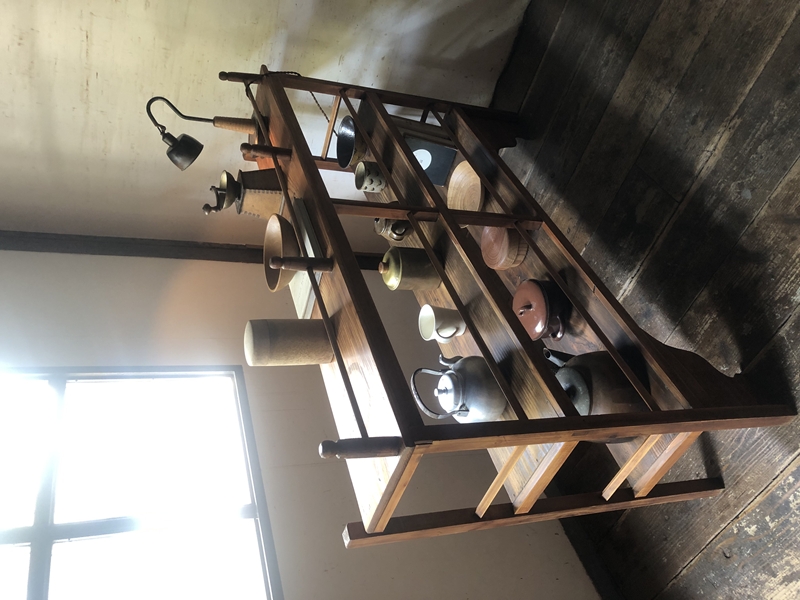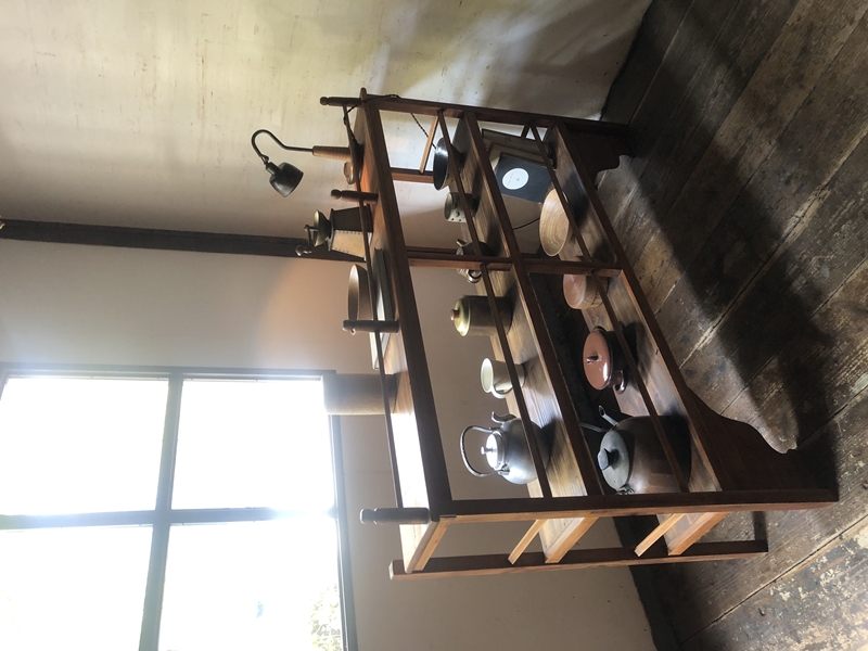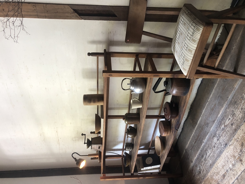 栗の木の棚です。お茶まわりのものや、パンや果物を置いたり、こういう棚があると何かと便利です。脚の先も可愛らしくなっています。だいたいテーブルくらいの高さなので、テーブルのサイドに置いてもいいですよ。