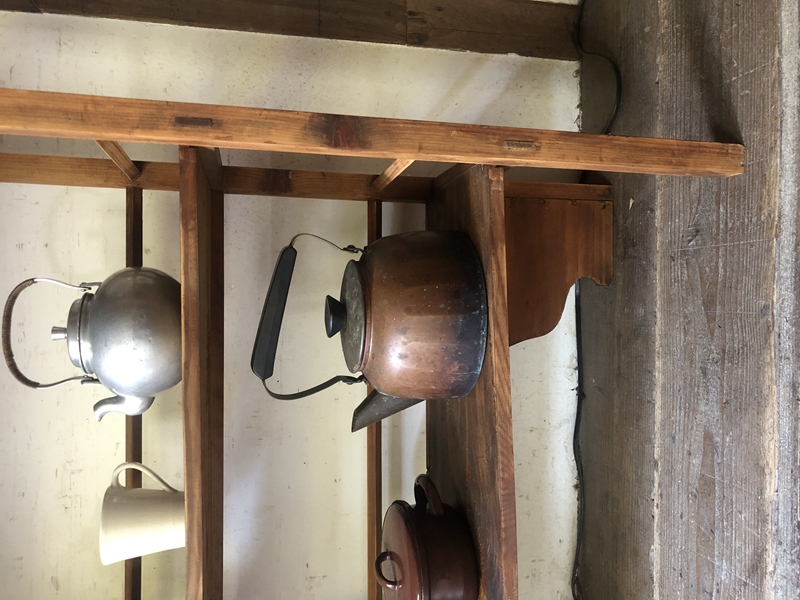 杉の棚です。素朴な杉の木で、棚らしく素っ気なく使えます。食器を並べたり、棚板が取れますので高さがあるモノの収納にも使えます。台所で食器棚の横に置いても色々便利ですね。構造上、揺らすとすこし揺れますが、大丈夫です。