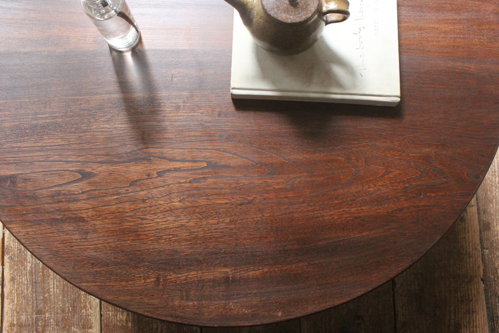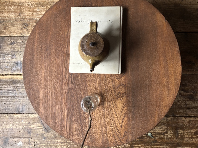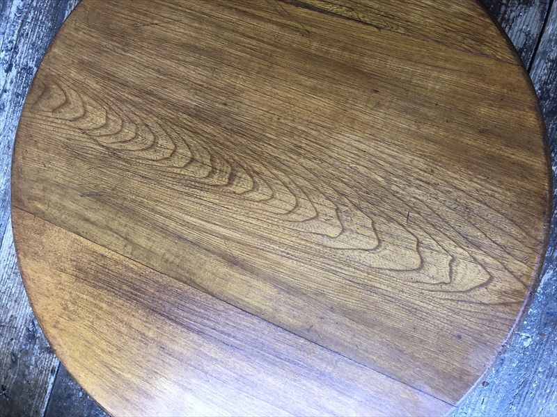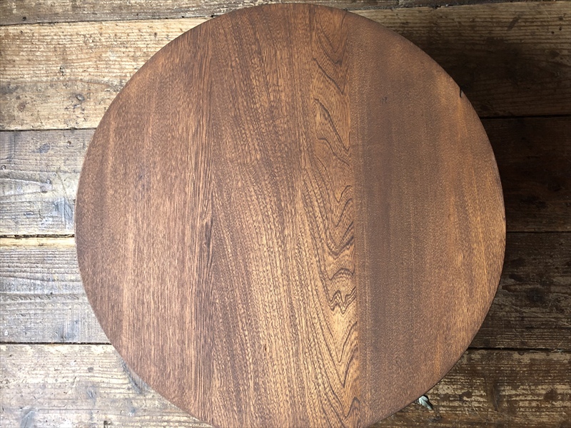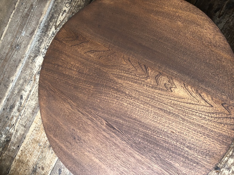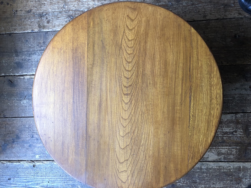 センのちゃぶ台です。流れるような杢目がきれいです。とても小さく珍品です。日本は小さいもので大きいモノと同じように作りますので丁寧に作られたものです。仲のいいひととサシ飲みやひとりでちょこちょこ楽しむにも良さそうです。小さくてとても可愛らしいです。折りたたみ出来ますよ。