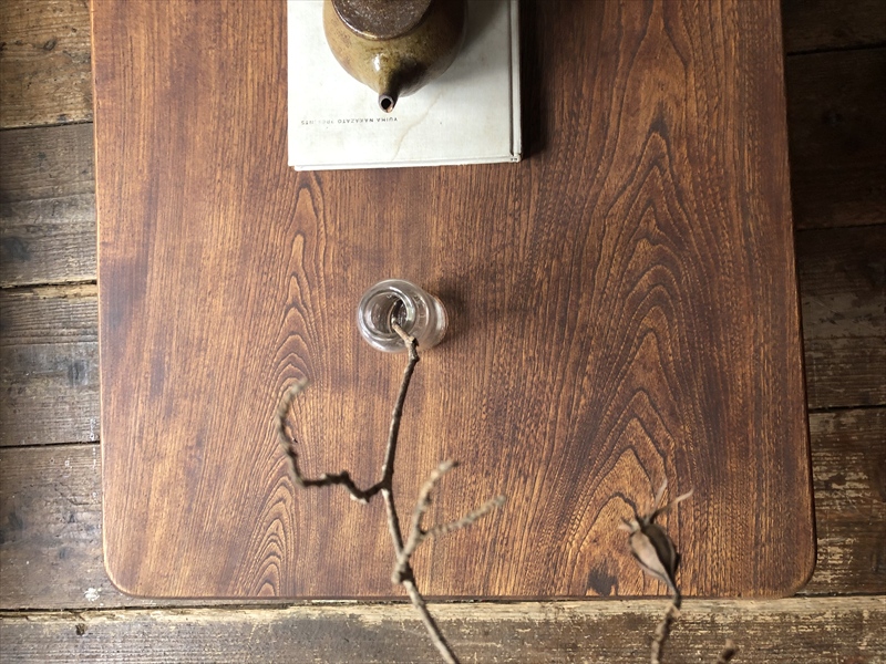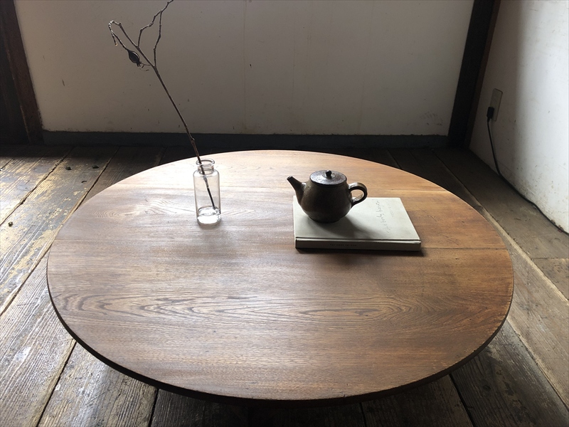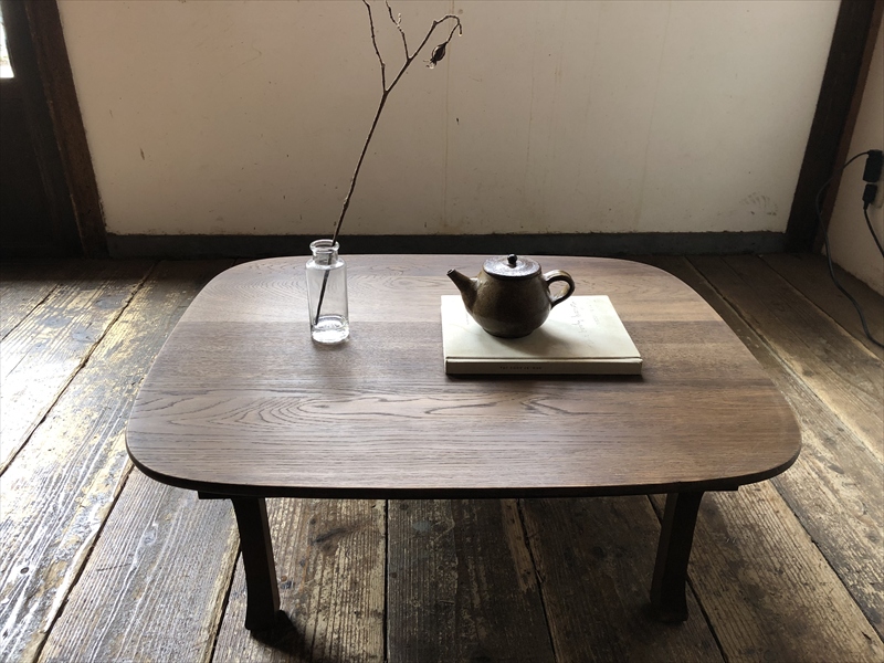 昭和30年代のシンプルなデザインのローテーブルです。ソファの前に置いたり、1~2人くらいのごはんにちょうどいいです。ナラの無垢材で、いい木味です。