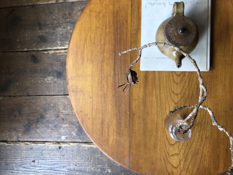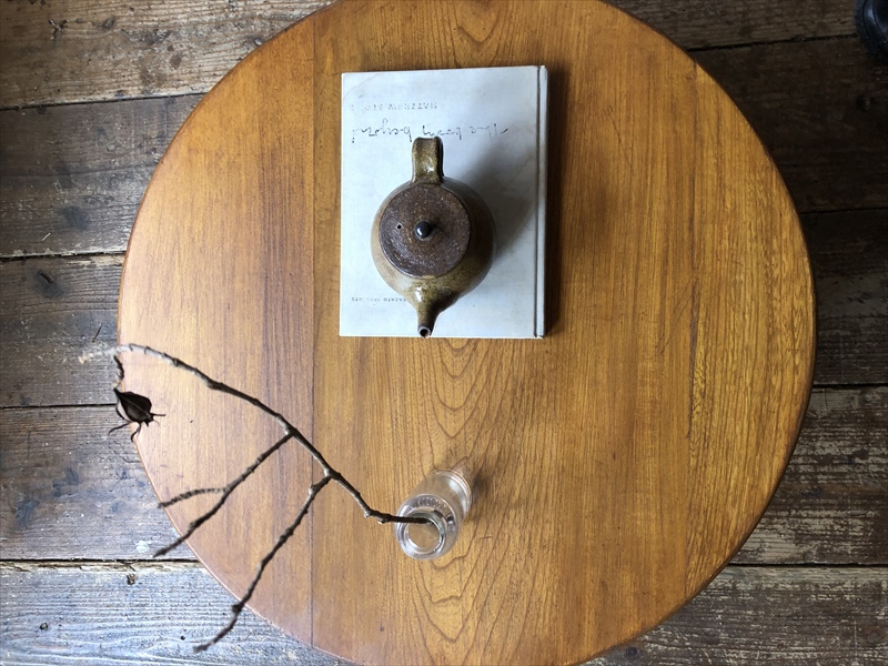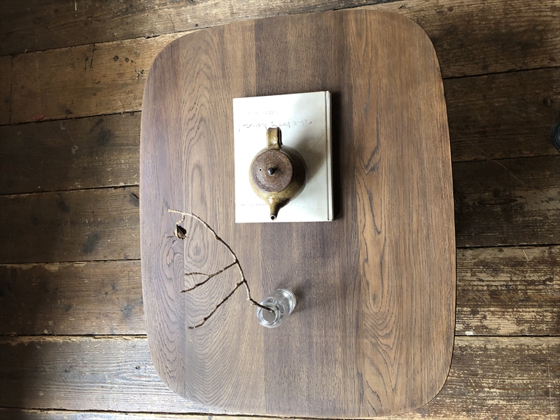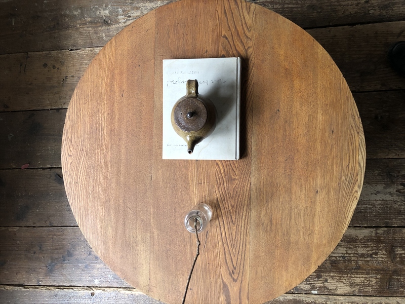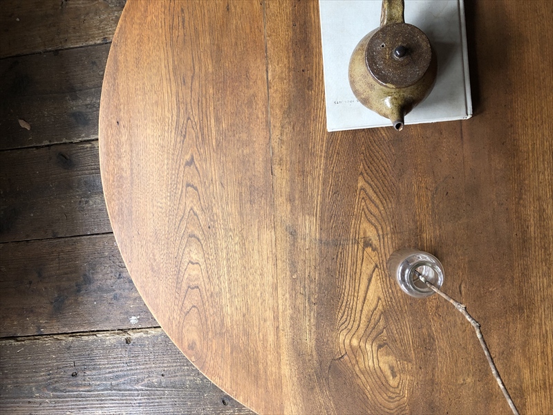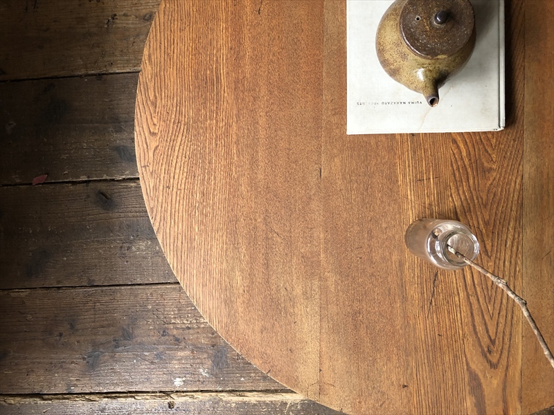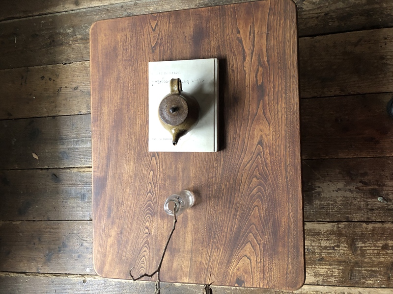 栗のつくえです。栗らしいとろ~んとした味のいい杢目です。明治から大正時代のモノですが、小さいのにこんなに細部まで美しく創られていて、どんなお家で使ってたのか気になります。お部屋に置いておくだけで場がしまります。これならどこでも置けるでしょうから使い手の方がそれぞれ楽しんでお使いくださいね。
