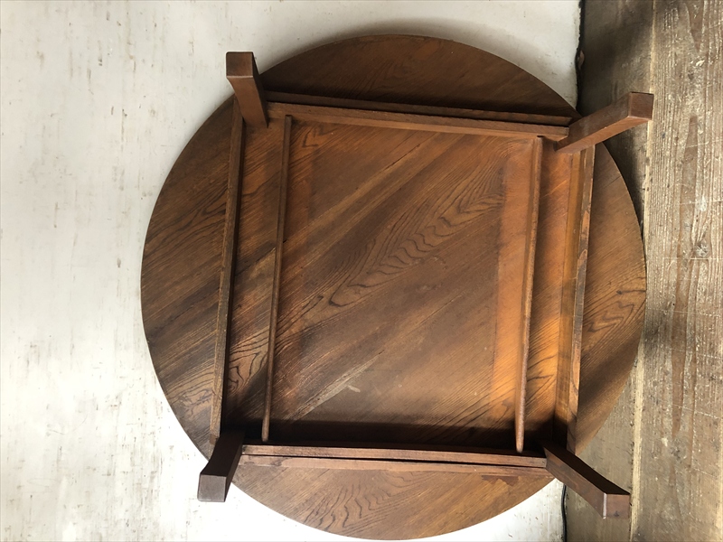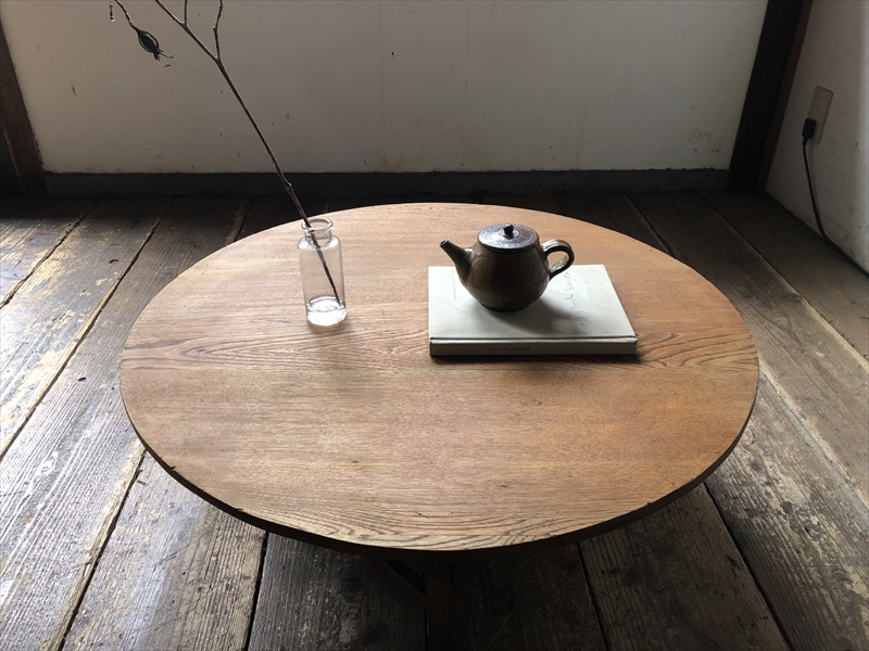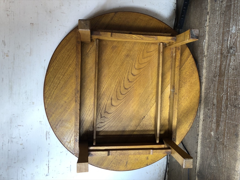 センのちゃぶ台です。美しい杢目です。すこし大きめ、丸ちゃぶ台にしては天板まで高めで使いやすいです。4人でしっかりお鍋など囲めます。和にも洋間にも合いますよ。折りたたみ出来ます。