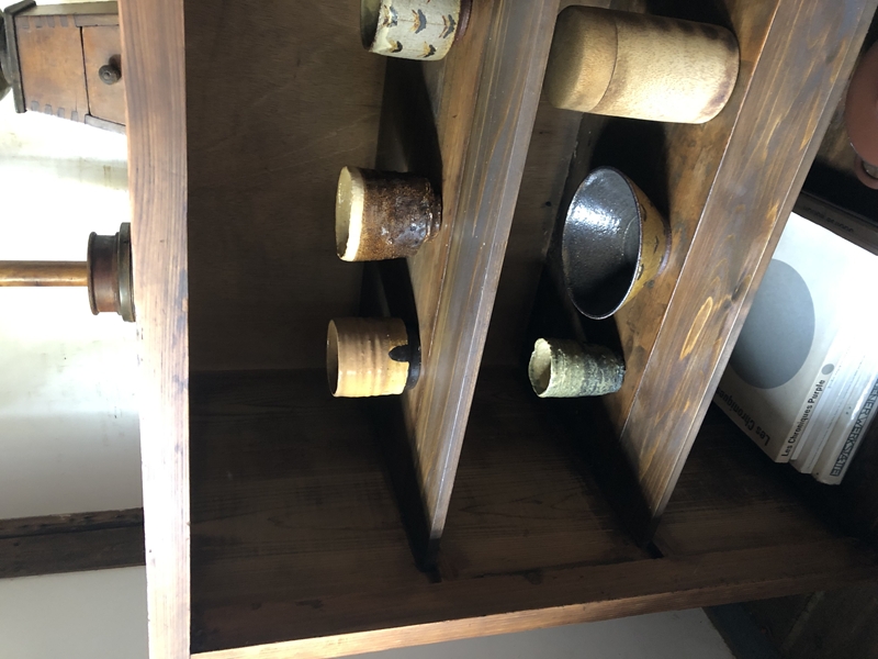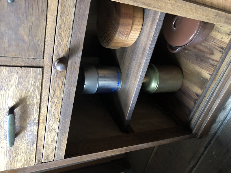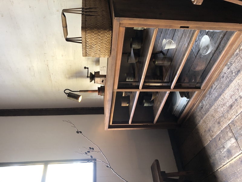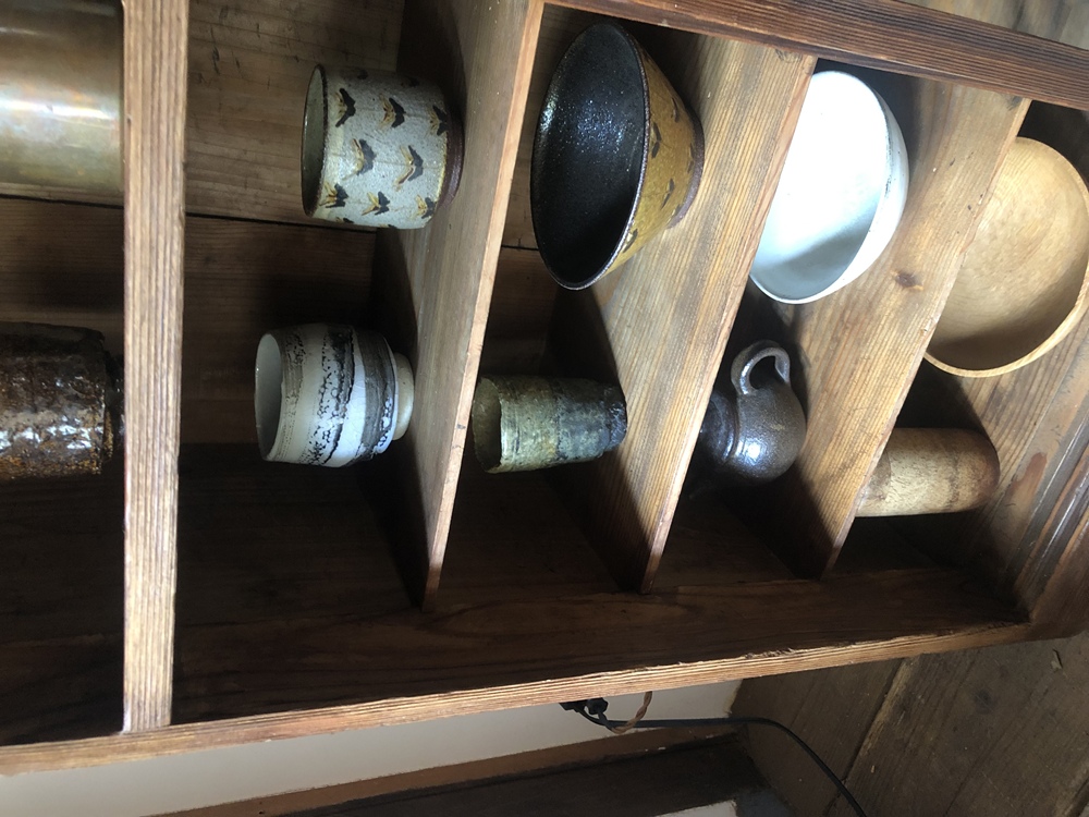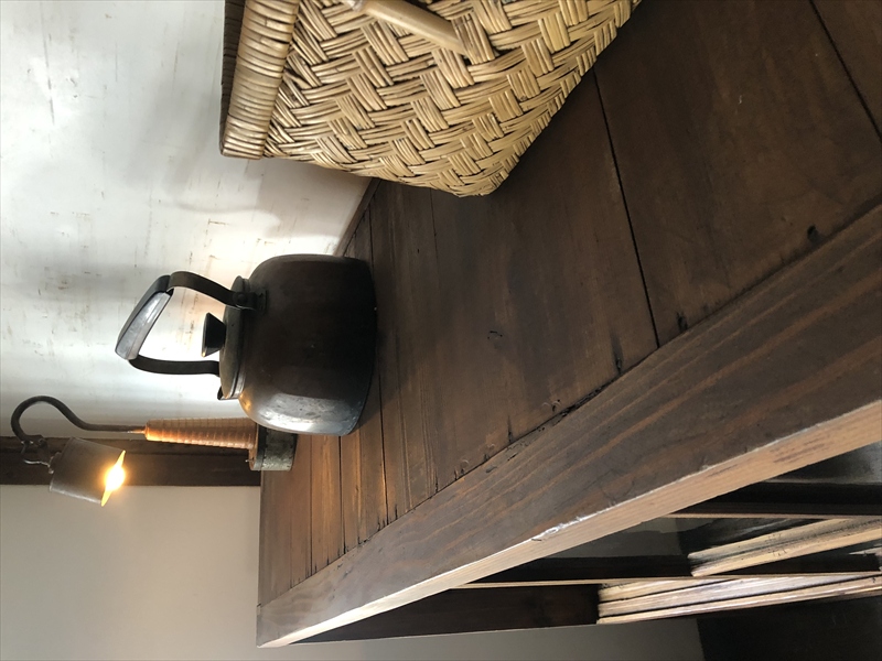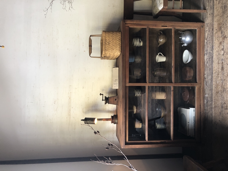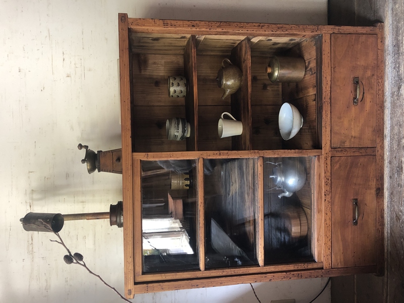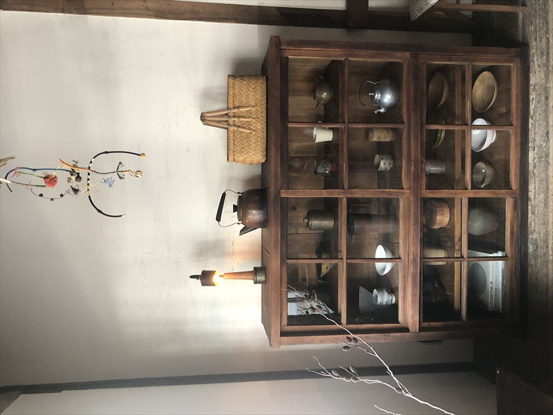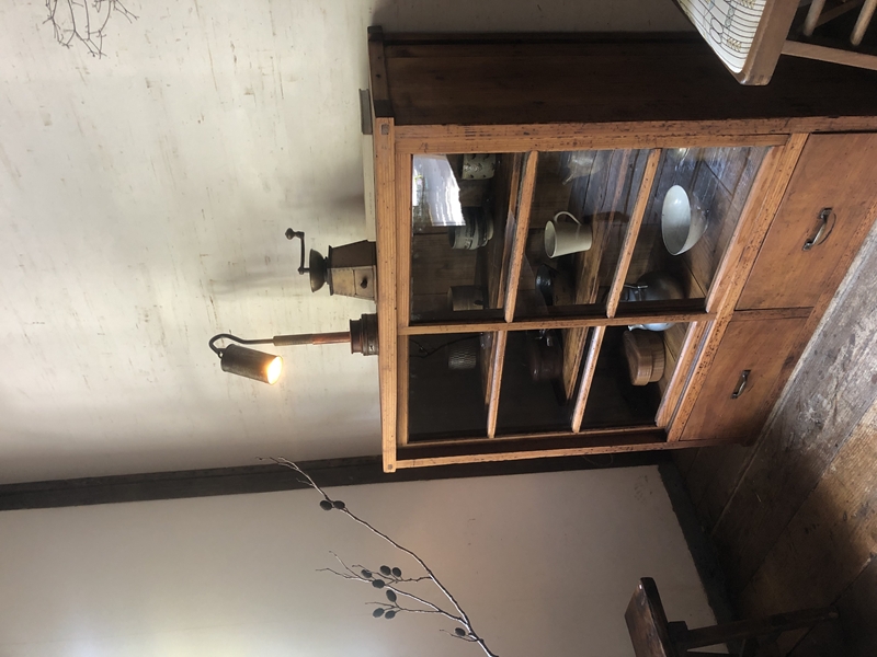 片扉のキャビネットです。大正時代のもので、取っ手も木の感じも格好いいです。お茶まわりのものだけ入れたり、酒器だけ入れてもなかなかよさそうです。