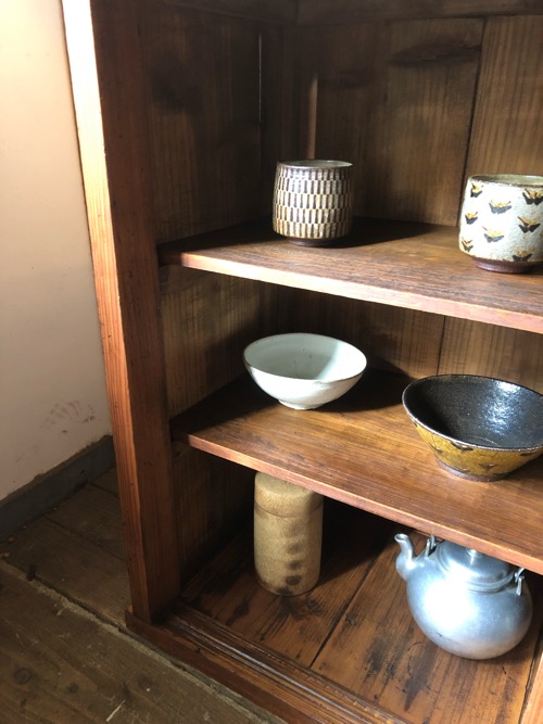 松と栗の木で作られた水屋です。見せながら、器が収納できます。天板にも色々置きやすい高さで、流し台のうしろに置いて、カウンターっぽくも使えます。とてもいい佇まいです。